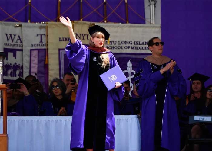La intérprete de ‘All Too Well’ al recibir el doctorado Honoris Causa de la Universidad de Nueva York, uniéndose así a un exclusivo grupo del que forman parte artistas de la talla de Aretha Franklin y Billy Crystal, y ofreció un discurso para los graduados en el estadio de los Yankees.