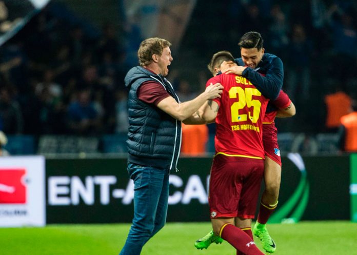 Hoffenheim, tercero en la tabla, se puso dos puntos arriba del Borussia Dortmund y ocho sobre el Hertha antes de la conclusión de la 26ta fecha del torneo.