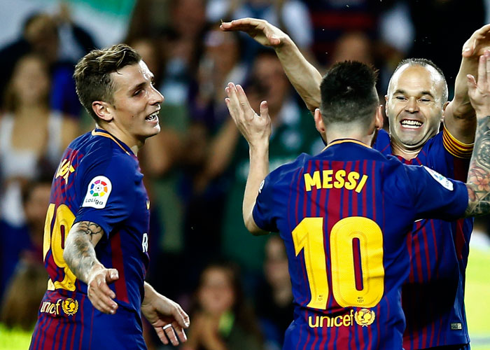 Gerard Delofeu repitió como titular y abrió el marcador a los dos minutos, mientras que Andrés Iniesta lo rubricó a los 56 con su primer tanto liguero, habilitado de forma brillante por el astro argentino Lionel Messi.