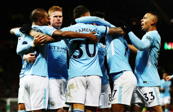 Manchester City capitalizó dos despistes defensivos de Romelu Lukaku para fijar un récord de victorias consecutivas en la Liga Premier al vencer el domingo 2-1 a Manchester United, sacándole una ventaja de 11 puntos a su acérrimo rival.