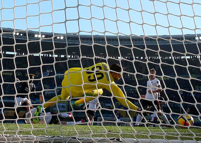 Milan tuvo varias oportunidades de empatar pero no lo permitió el imperioso portero brasileño Nicolas, de Verona.