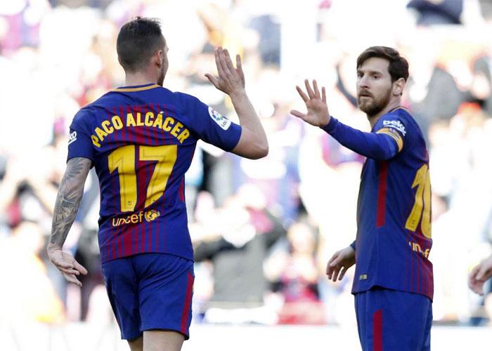 El primero gol fue, a los ocho minutos, obra de Paco Alcácer, que hoy hizo del sancionado Luis Suárez rematando de primeras una pase de la muerte de Jordi Alba, que recibió de Messi en fuera de juego.