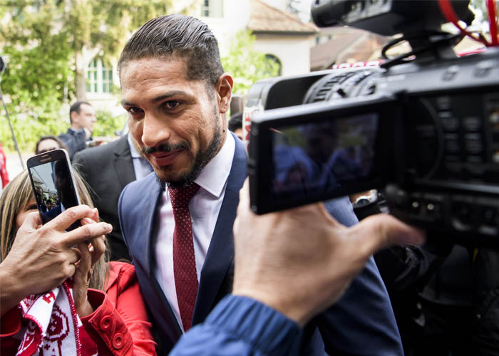 El jugador del Flamengo brasileño llegó a la sede del TAS en la ciudad suiza de Lausana, en el oeste del país, pero no quiso hacer declaraciones a los medios de comunicación apostados en el exterior. Recibió el apoyo de una veintena de aficionados peruanos se congregó ante el TAS con banderas, camisetas, bufandas y gorros en los colores de su país, y gritó "Paolo es inocente".