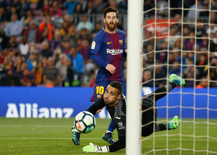 Messi anotó poco antes del descanso tras recibir un pase medido de Andrés Iniesta. El astro argentino llegó a 34 goles en el campeonato, nueve más que Cristiano Ronaldo, su perseguidor más cercano en la tabla de artilleros.