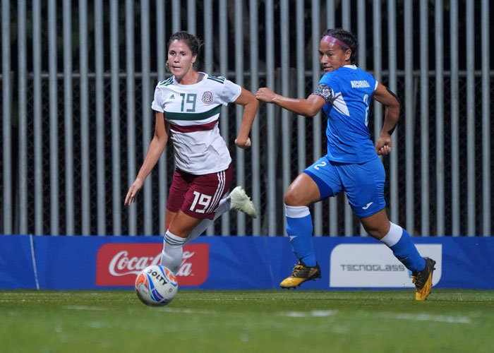 Las dirigidas por Elna Dixon no contaron Sheyla Flores debido a una lesión que viene arrastrando en la rodilla derecha, a pesar que no estuvo presente la defensora, Nicaragua se planteó bien en el campo en el primer tiempo. La primera anotación de las aztecas vino hasta el minuto 35, finalizando el primer tiempo 1-0.