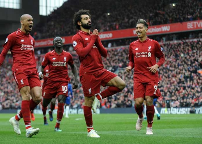Un gol de antología de Mohamed Salah aseguró el domingo triunfo de Liverpool por 2-0 sobre Chelsea, para que se mantuviera la cerrada lucha entre los Reds y el Manchester City por el cetro de la Liga Premier inglesa.