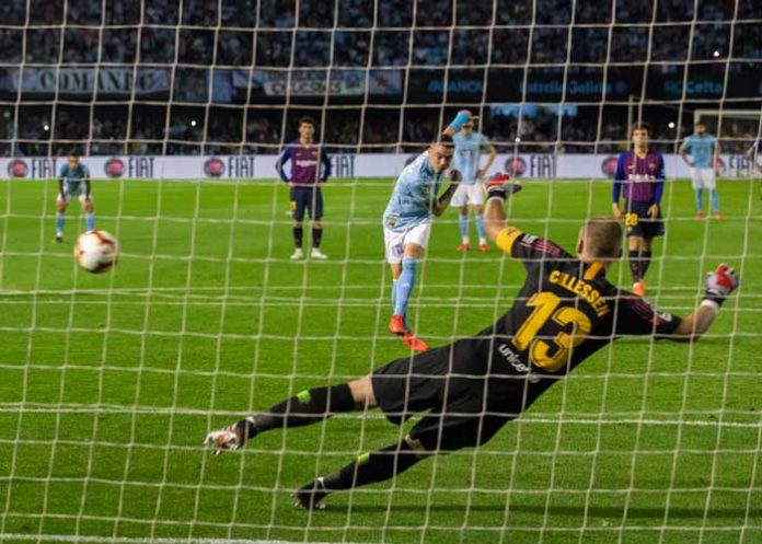 El VAR volvió a aparecer cuando el árbitro José María Sánchez revisó una jugada en la que el balón le dio en la mano al defensa francés Samuel Umtiti y decretó el penal a favor del Celta, que Aspas cobró magistralmente para cuajar la victoria ante sus aficionados.