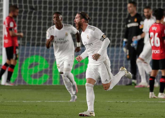 Sergio Ramos anotó mediante un soberbio cobro de tiro libre, luego de que Vinícius Júnior había abierto el camino al triunfo con otra diana, y el Real Madrid venció 2-0 al Mallorca el miércoles, para volver a la cima de la Liga española.
