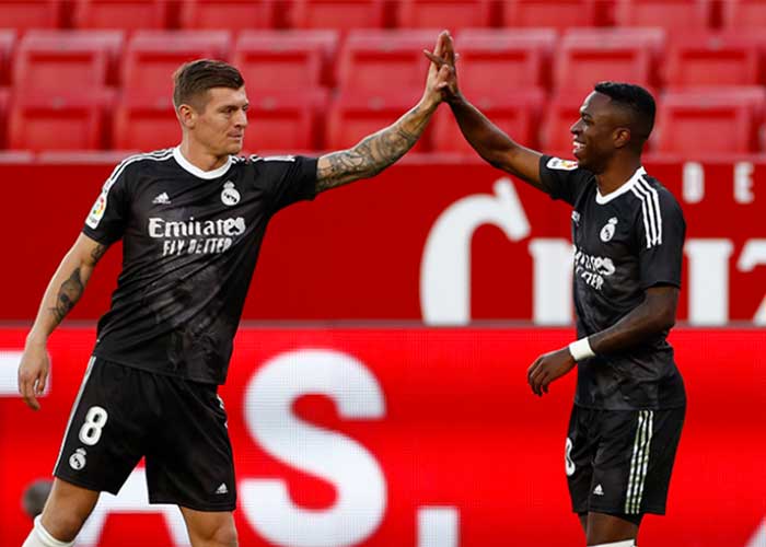 Los merengues suman 20 puntos para ascender a la 3ra posición. El Sevilla —goleado 4-0 por el Chelsea a media semana en su duelo de “Champions”— se estancó en la 5ta posición con 16.