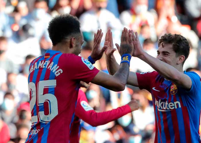 El gabonés Aubameyang, llegado al Barcelona en el cierre del mercado de enero desde el Arsenal inglés, abrió el marcador en Mestalla, en el 23, definiendo a la perfección un pase en largo de Jordi Alba.