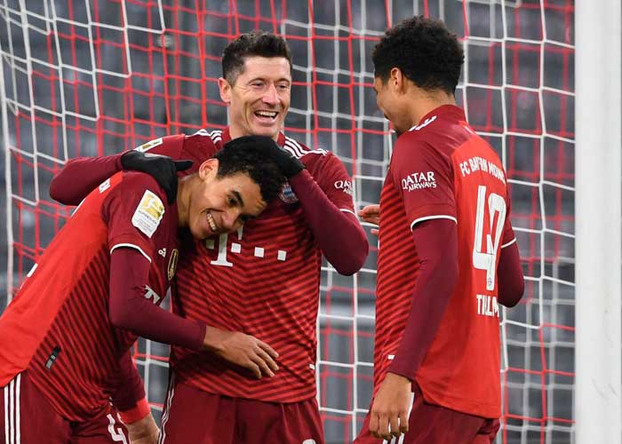 Los tantos del Bayern este viernes fueron conseguidos por Thomas Müller (minuto 7), el francés Dayot Upamecano (57), Leroy Sané (59) y el polaco Robert Lewandowski (88).