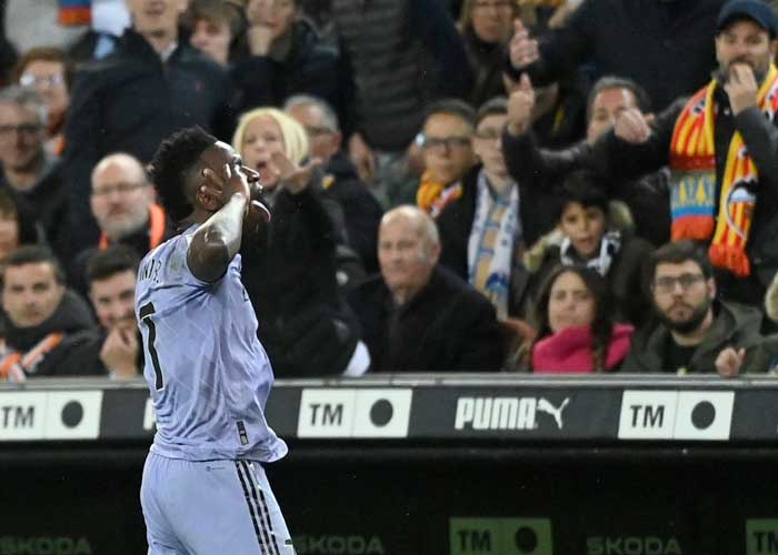 Vinicius Jr celebra anotación en el Estadio de Mestalla en Valencia. (Foto: AFP)
