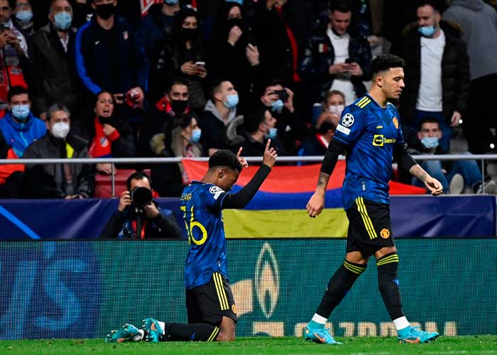 El Atlético abrió el marcador con un gol de cabeza de Joao Félix (7), pero Anthony Elanga igualó cerca del final (80); con lo que el pase a cuartos se decidirá en tres semanas en Old Trafford.