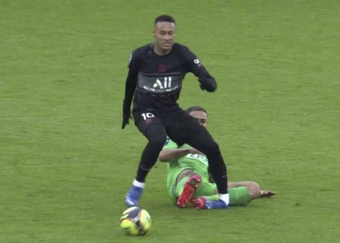 A raíz de una entrada Yvann Maçon, el 10 parisino cayó sobre su rival y su tobillo izquierdo se dobló en esa acción al apoyarlo sobre el césped. Entre evidentes signos de dolor, Neymar fue retirado en camilla en el minuto 87 de juego, sustituido por Eric Junior Dina Ebimbe.