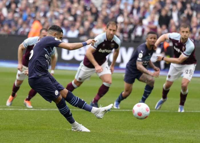 Un dramático penal pudo haber mantenido con vida la lucha por el título de la Liga Premier; cuando Riyad Mahrez se plantó para ejecutar un remate desde los 12 pasos a los 86 minutos para el Manchester City, el atacante argelino sabía que tenía al alcance sentenciar virtualmente otro campeonato de liga para su equipo.