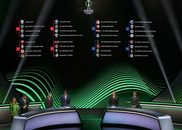 Roma, al que el técnico José Mourinho se sumó este año, tendrá compromisos ante Zorya Luhansk, CSKA de Sofía y Bodø/Glimt, un conjunto noruego emergente que debuta en una fase de grupos en su historia. Tottenham, el único de los clubes que trató de conformar la Superliga en el sorteo, tendrá como rivales a Rennes, Vitesse Arnhem y el esloveno Mura.