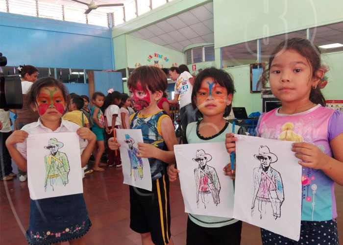 Niños y niñas del Centro de Desarrollo Infantil Mildred Abaunza, ubicado en el Mercado Iván Montenegro, en Managua, realizaron diversas actividades este martes y entre ellas pintaron al General Augusto C. Sandino.