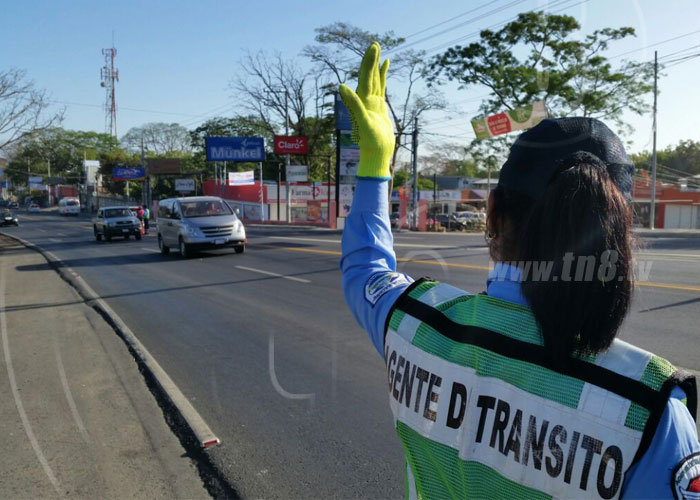 En las entradas y salidas de la capital de Nicaragua, Managua, la Policía Nacional activó dispositivos de la Dirección de Seguridad de Tránsito para agilizar el tráfico.