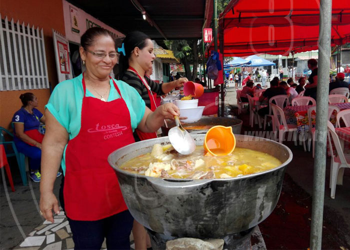 Al iniciar la calle de sur a norte se ubica doña Marisol Hernández con cuatro peroles llenos de sopa de res, mondongo y gallina con albóndiga, sus clientes hacen una parada obligatoria para saborear este alimento por solo 70 córdobas la taza, equivalente a unos dos dólares con 25 centavos aproximadamente.