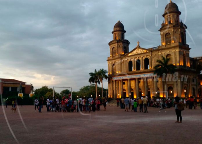 En la plaza de la Revolución, un espacio donde se respira patriotismo, se aprecia las arquitecturas de los edificios mas antiguos de Managua, capital de Nicaragua y donde también las familias pueden disfrutar de las tardes durante los fines de semana de este quinto mes con mucha alegría.