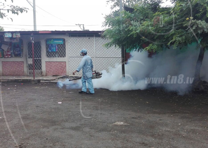 Las familias del Distrito II de Managua toman las recomendaciones brindadas por el Ministerio de Salud (MINSA) para prevenir las enfermedades epidémicas del dengue, zika y chikungunya, contribuyendo así con los brigadistas que llegan a fumigar las viviendas esta mañana de lunes.