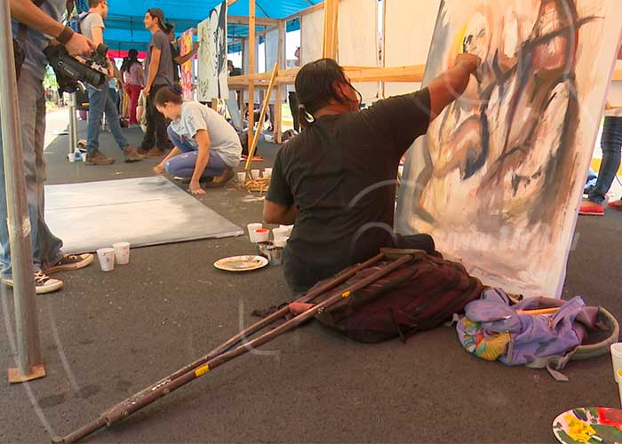 “Así promovemos el arte, promovemos la cultura y sobre todo a jóvenes que estamos emergiendo en el arte. En esta ocasión que estamos conmemorando a nuestro General de Hombres y Mujeres Libres, nosotros tenemos una temática libre para manifestar lo que nosotros sentimos, traemos y sabemos a cerca de la vida y obra del General Augusto C. Sandino”, comentó por su parte la joven Ninoska Borge, otra artista plástica emergente.