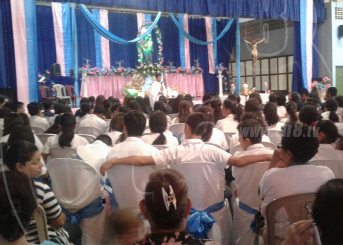 En el Colegio María Mazzarello, ubicado en el Distrito III de Managua, estudiantes, docentes y personal de ese centro de estudios honraron este miércoles con una solemne misa a la Virgen María Auxiliadora.