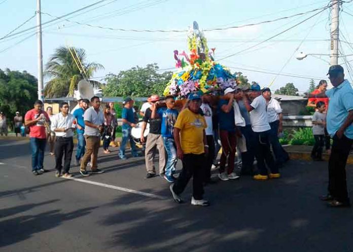 Bailando al son de chicheros, cargadores de la imagen del mocito de Santo Domingo de Guzmán, patrono de Managua, salen en peregrinación por diversos barrios de la capital, esta vez la pequeña imagen estuvo en algunas calles del barrio Hialeah, donde permanecerá en la casa de habitación de la familia de don Ruddy Antonio Tórrez, quien tiene 12 años de recibir en su casa al mocito.