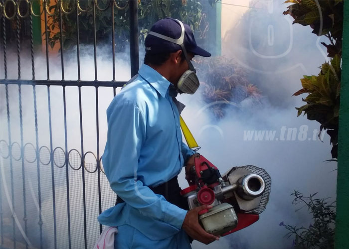 Este sábado, por ejemplo, brigadistas de fumigación recorrieron casa a casa los andenes que conforman el barrio Hugo Chávez en el distrito 6 de Managua, un sitio cercano a las costas del lago Xolotlán y por ende, vulnerable a la proliferación del mosquito transmisor de enfermedades como el Dengue, Chikungunya y Zika.