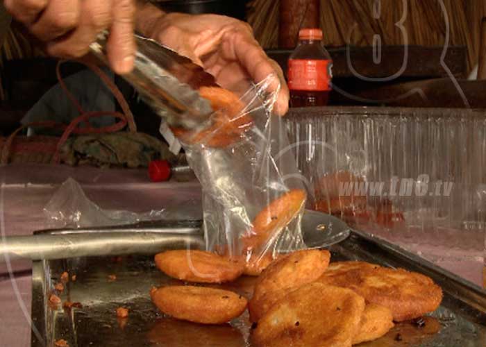 ¨ Estos buñuelos son a base de yuca, crema, queso y tiene un precio de 3 por 10 córdobas, desde hace 10 años me dedico a elaborarlos, son leoneses, mi mamá los hacia en León y así aprendí hacerlos, y ahora los oferto aquí en la feria, vienen a buscarlo bastante los buñuelos porque son de calidad, la diferencia es el gusto porque llevan bastante queso¨