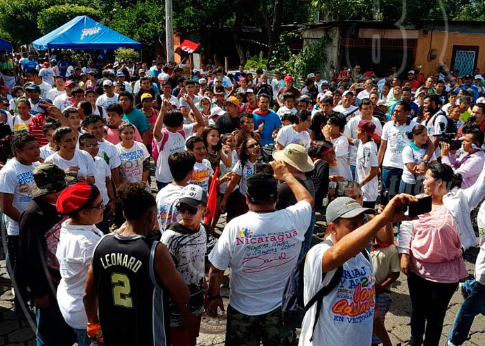 Al concluir el acto, dio inicio el repliegue saliendo de la iglesia Sagrada Familia del barrio Ducualí, rumbo a Piedra Quemada, Nindirí, destacando el rol de la juventud durante la revolución y el compromiso que hoy asumen en este nuevo proceso de victorias.