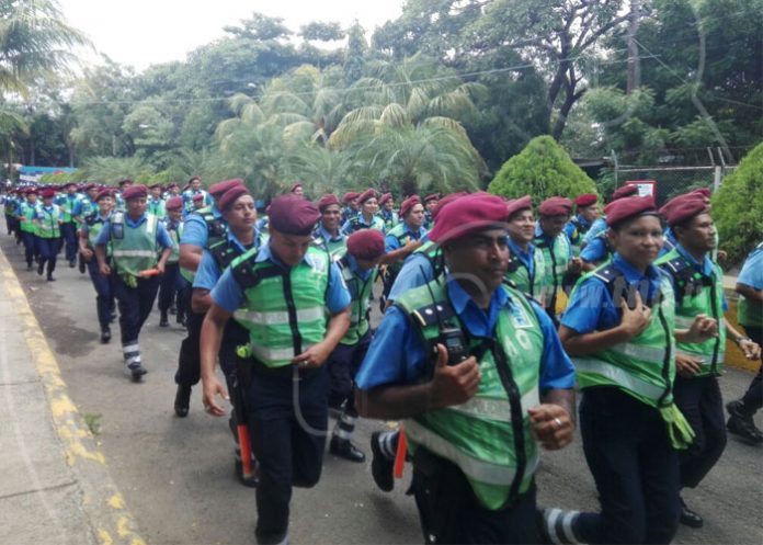 Unos tres mil agentes de la Policía Nacional salieron hoy del complejo policial Ajax Delgado con rumbo a las diferentes actividades que se realizan en Managua, en honor a Santo Domingo de Guzmán.