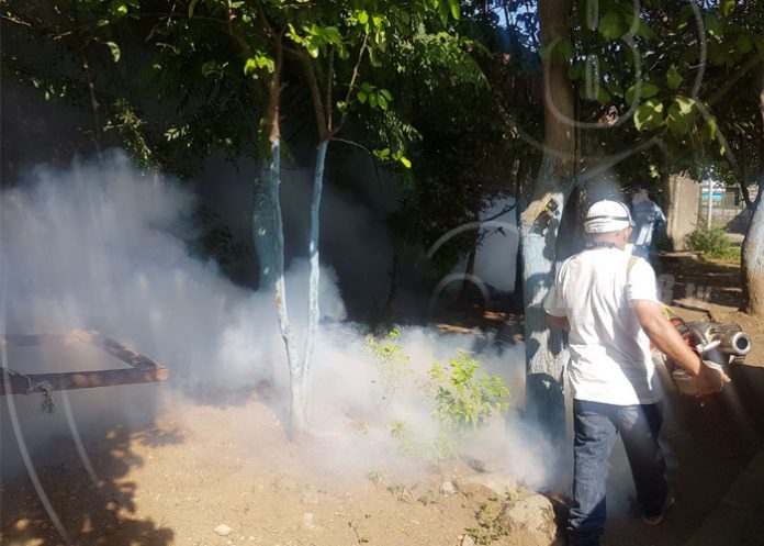 En el barrio Alemania Democrática del Distrito II de Managua se fumigó, llamando a la población a abrir las puertas de sus viviendas.