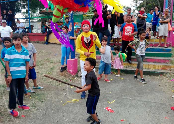 Con piñatas, payasos, pintacaritas y mucha alegría los barrios de Managua se llenaron de sonrisas de los mimados y mimadas de la casa , quienes junto a la Promotoria Solidaria quebraron piñatas enviadas por el Gobierno para el deleite de los niños y niñas.