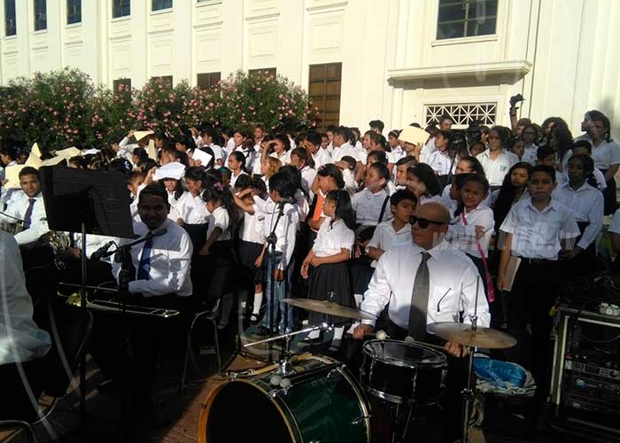 El remozado centro histórico de Managua fue el escenario de la presentación de la orquesta sinfónica juvenil, así como de los coros estudiantiles que dedicaron diversas piezas nicaragüenses en saludo al 151 aniversario del nacimiento del príncipe de las letras castellanas, Rubén Darío.