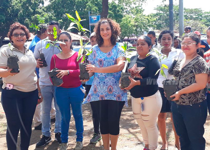La Alcaldesa de Managua, Reyna Rueda Alvarado, se unió a la celebración y sembró un árbol en el área verde del parqueo del populoso centro de compras.