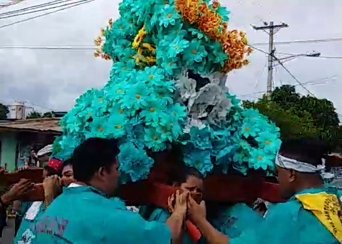 La familia del torólogo Lisímaco Chávez, junto a cargadores tradicionalistas, llevaron una réplica de la diminuta imagen de Santo Domingo de Guzmán hacia el cementerio de San Judas en Managua, lugar donde descansan los restos de este folklorista.