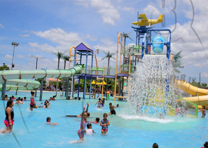 Este parque acuático cuenta con un espacio de 350 metros lineales de la costa del lago de Managua, cuenta con distracciones como un espectacular tobogán y dos áreas de piscinas infantiles, gracias a esta espectacular obra las niñas y niños pueden pasar una tarde amena llena de alegría y mucha diversión, se puede apreciar en el rostro de los niños llenos de felicidad, es una recompensa para cada uno de los familiares.
