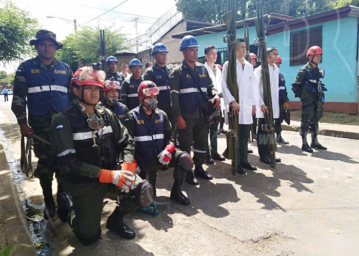 En el Ejercicio Multiamenazas por Protección de la Vida participaron personal del Hospital Solidaridad, centro de salud Francisco Buitrago, la Policía Nacional, los bomberos y la brigada UHR del Ejército de Nicaragua.
