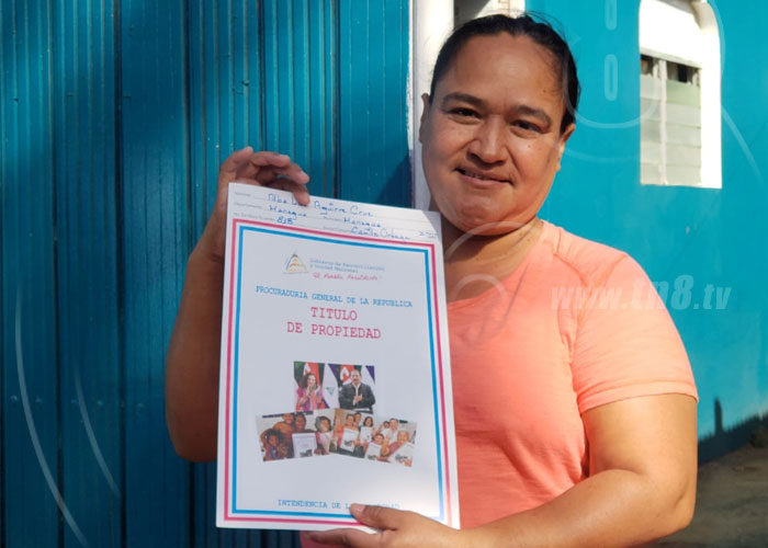 "Primeramente Dios, las gracias para él y después a nuestro Comandante Daniel Ortega, porque él cumple lo que promete y gracias a Dios que ya tenemos el título en las manos, porque no sabemos el tiempo que viene, esperamos que sigamos con el Presidente porque con él ganamos todos", expresó Blanca Doña.