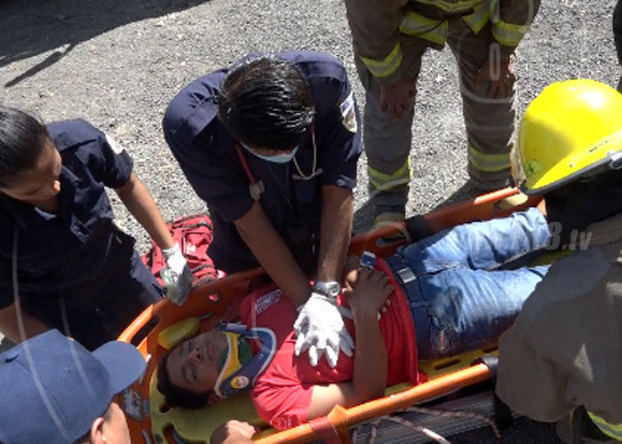 El exitoso simulacro fue realizado el viernes en la estación bomberil de la Dirección General de Bomberos ubicada en Waspán Sur, kilómetro 7.5 de la Carretera Norte, del Distrito VI de Managua, a eso de las 10 de la mañana. Ahí valientes apagafuegos demostraron sus capacidades ante el rescate de personas bajo cualquier situación de peligro, en este contexto fue un ciudadano electrocutado.