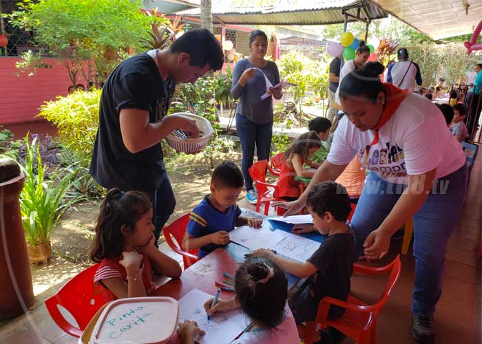 Hasta el Centro de Desarrollo Infantil Colombia en Managua, los promotores solidarios llegaron para compartir con los infantes talleres comunitarios de dibujos, pinturas y artes plásticas.