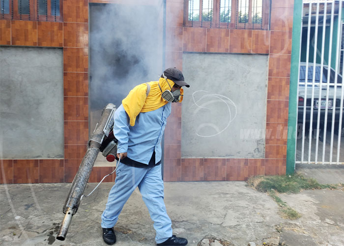 Unas 800 viviendas de la Colonia 14 de Septiembre, del Distrito VI de Managua, fueron fumigadas este martes por brigadistas del Ministerio de Salud con el fin de erradicar el mosquito transmisor del dengue.
