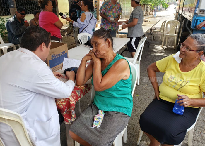 Son muchos los pobladores que deciden atender su salud directamente en el barrio donde viven, gracias a las clínicas móviles que instala el Gobierno de Nicaragua a través del Ministerio de Salud.