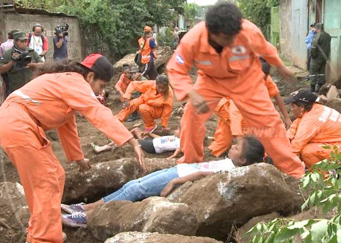 “Los escenarios fueron los siguientes: Un terremoto donde las familias se auto evacuaron, posterior el llamado a las instituciones con las brigadas especializadas (bomberos, Ejército de Nicaragua, Defensa Civil), despeje de las vías, personas rescatadas de una estructura colapsada, el incendio en una vivienda producto de un cortocircuito y el rescate de familias atrapadas en una casa por inundaciones. Aquí lo importante a destacar es la participación de las familias”, concluyó Espinoza.