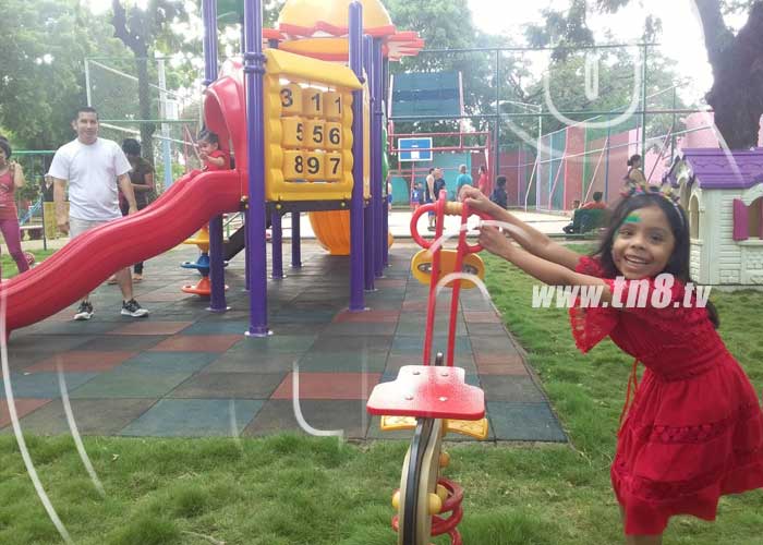 La niña Hilary Blanco, habitante de la zona de las Sierritas de Santo Domingo, sobre la carretera a Masaya, dijo que gracias a Dios y al gobierno, hay parques para que todos se diviertan.