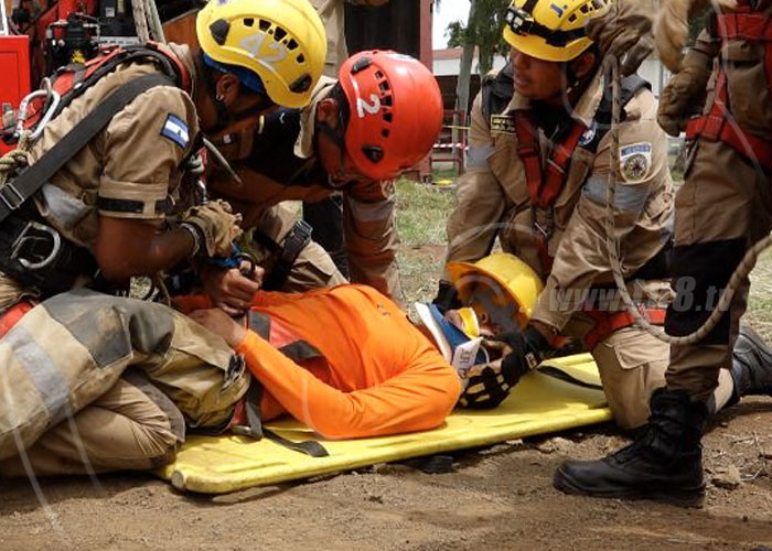 La mañana de este miércoles, 10 elementos de la unidad de Búsqueda y Rescate de los Bomberos realizaron un ejercicio demostrativo de rescate de una persona que cayó en un pozo en construcción, ejercicio llevado a cabo en la Academia Nacional de Bomberos, en Managua.