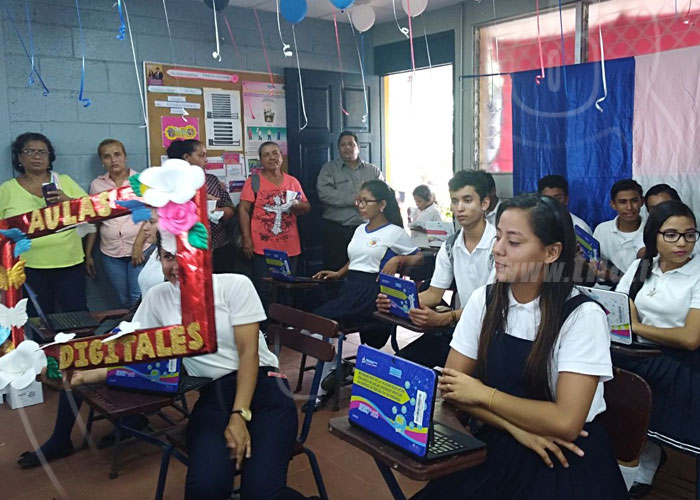 Estudiantes del colegio Gaspar García Laviana, ubicado en el kilómetro 38 de la Carretera Panamericana Norte, jurisdicción de Tipitapa, con mucha alegría recibieron 40 tablets digitales como una nueva herramienta para mejorar el aprendizaje.