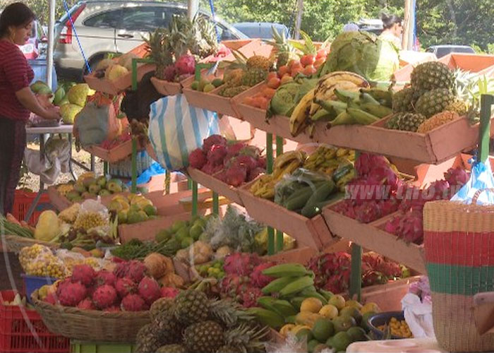 Sara Hernández, productora de frutas del municipio de Ticuantepe, oferta muchos productos frescos. "Aquí estamos, ofreciendo pitahaya, limón, chayotes, zanahorias, ayotes, todos fresco. Para hacer frescos tenemos piñas, melón, naranjas, sandías y a buen precio, para que los clientes siempre vengan y encuentren un precio accesible", invitó esta productora.