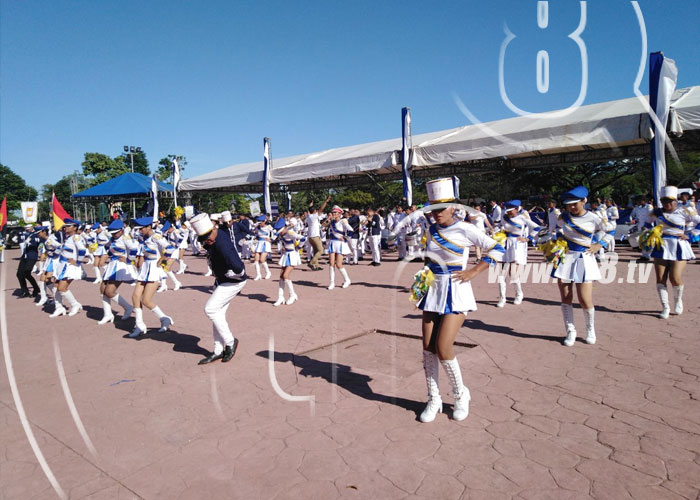 Estudiantes de los distritos III y VII de Managua fueron los protagonistas del desfile patrio realizado este fin de semana en la Plaza 22 de agosto.